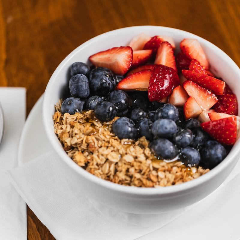Açaí strawberries, blueberries, and granola.