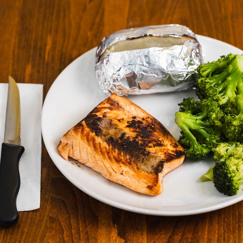 Served with broccoli, baked potato and small salad.
